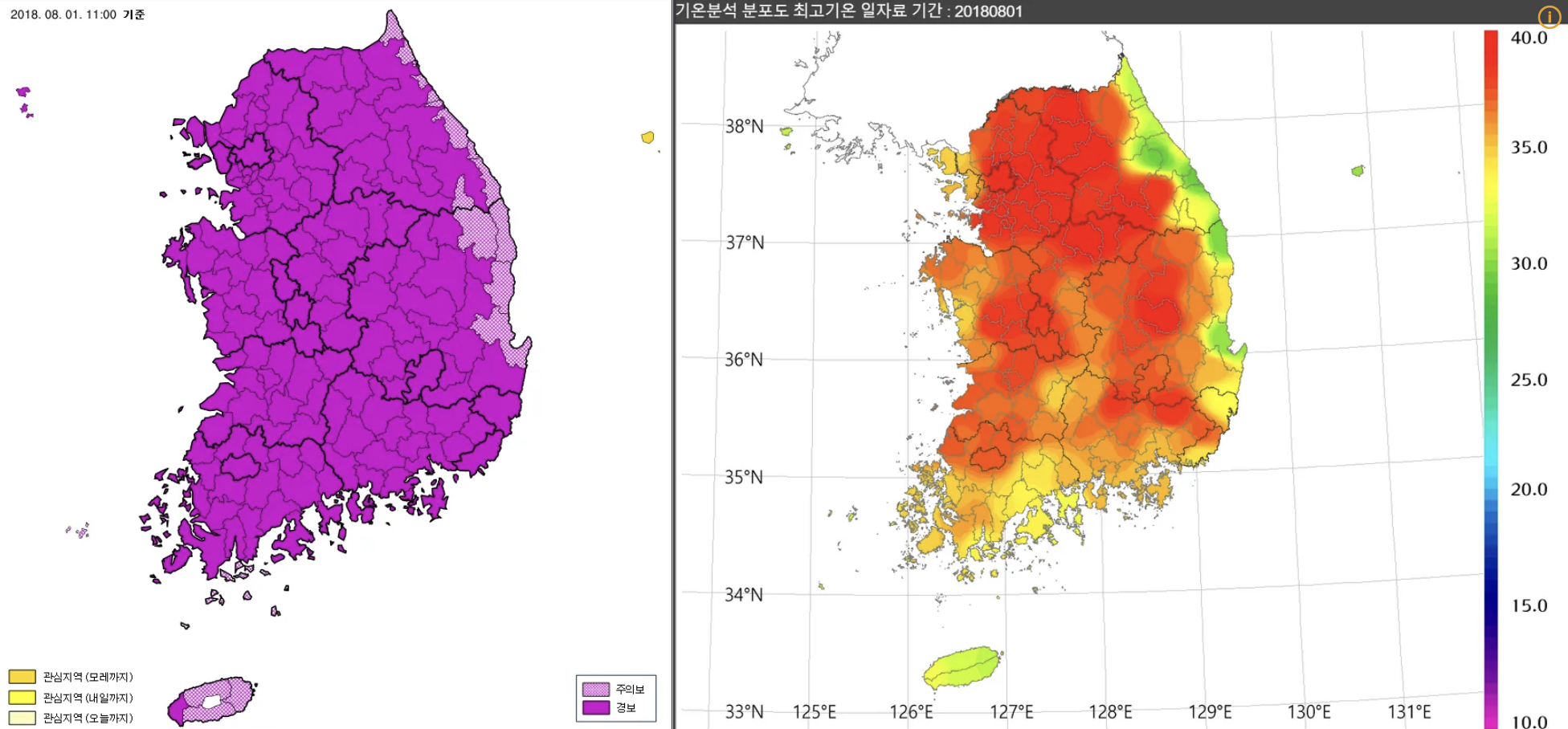 - 폭염경보: 일 최고기온 35℃ 이상 2일 이상
