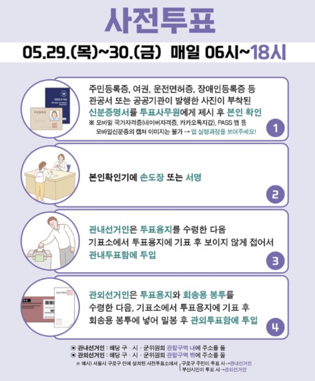 - 사전투표일: 2025년 5월 29일(목) ~ 5월 30일(금)